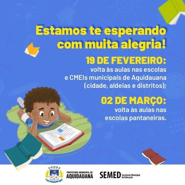 Nesta quarta-feira (19) é o grande dia! Volta às aulas nas escolas da Rede Municipal de Educação de Aquidauana e nos CMEIS - Centros de Educação Infantil do municipio de Aquidauana.