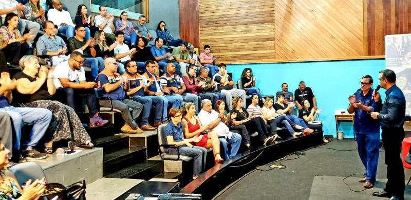 “Vocês são o elo entre o Governo do Estado e a população, levando mensagens importantes para a nossa sociedade”, destacou Flávio, fazendo referência direta também ao diretor-presidente da fundação. “Bosco tem sido um baluarte da comunicação em Mato Grosso do Sul. Reconhecemos seu trabalho e dedicação, sendo um dos maiores responsáveis por manter acesa a chama da Fertel”, pontuou, emendando a seguir que “sozinho, ele não conseguiria realizar todas as coisas boas que tem acontecido à Fertel, pois vocês (servidores) têm cumprido o seu papel para sempre fazer melhor”.