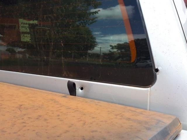 Perfurações de bala na caminhonete de Dirceu Lanzarini; Funcionário da fazenda descarregou o revólver a curta distância (Foto: A Gazeta News)