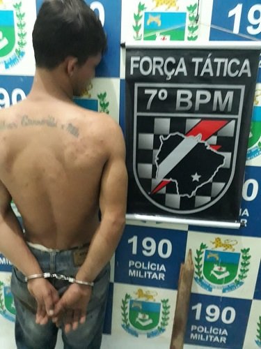 Equipe da Força Tática foi acionada no final da noite desta terça-feira (26) para conter briga generalizada dentro de uma casa noturna, em Aquidauana. JPDA, 24 anos, foi preso em flagrante, por ameaçar funcionários e clientes com um pedaço de pau.