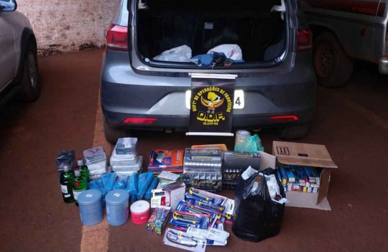 No veículo Fox cinza, conduzido por um homem (36) estavam aparelhos para internet, bebida alcoólica, balanças portáteis, relógios, linha de pesca, fita adesiva, cartões de memória, cremes e tinturas para para cabelo.